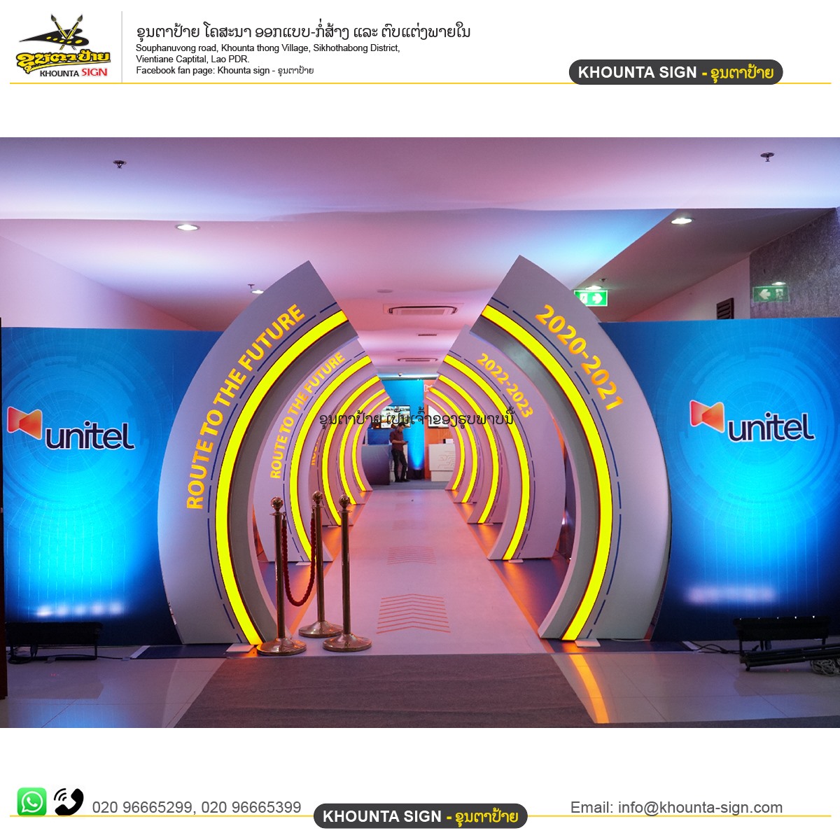 ຕົບແຕ່ງອາຄານ ລວດລາຍເຮັດດ້ວຍໄຟເບີກາດ ຕາມແບບ ໂລໂກ້ປ້າຍນູນແບບ3ມິຕິ ກ່ອງໄຟ